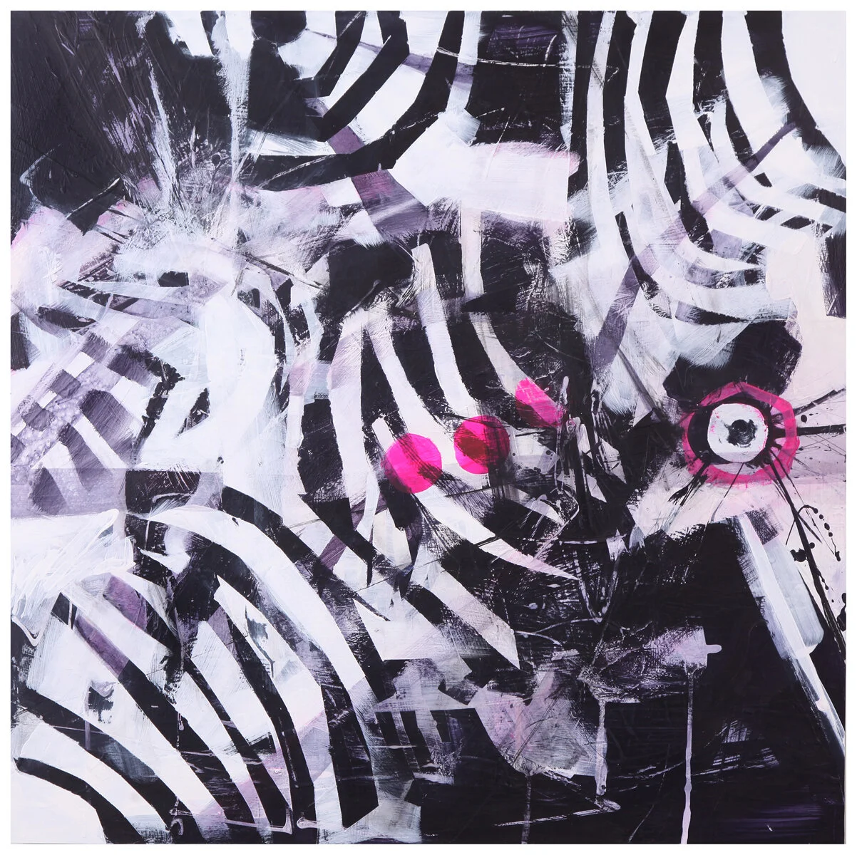 The Syncopation series began from learning about syncopation in musical composition (simply described as off beat/ irregular rhythm), so it is the unexpected and perhaps a jarring effect it may cause that was interesting to me, and this idea has been translated into two-dimensional paintings.
